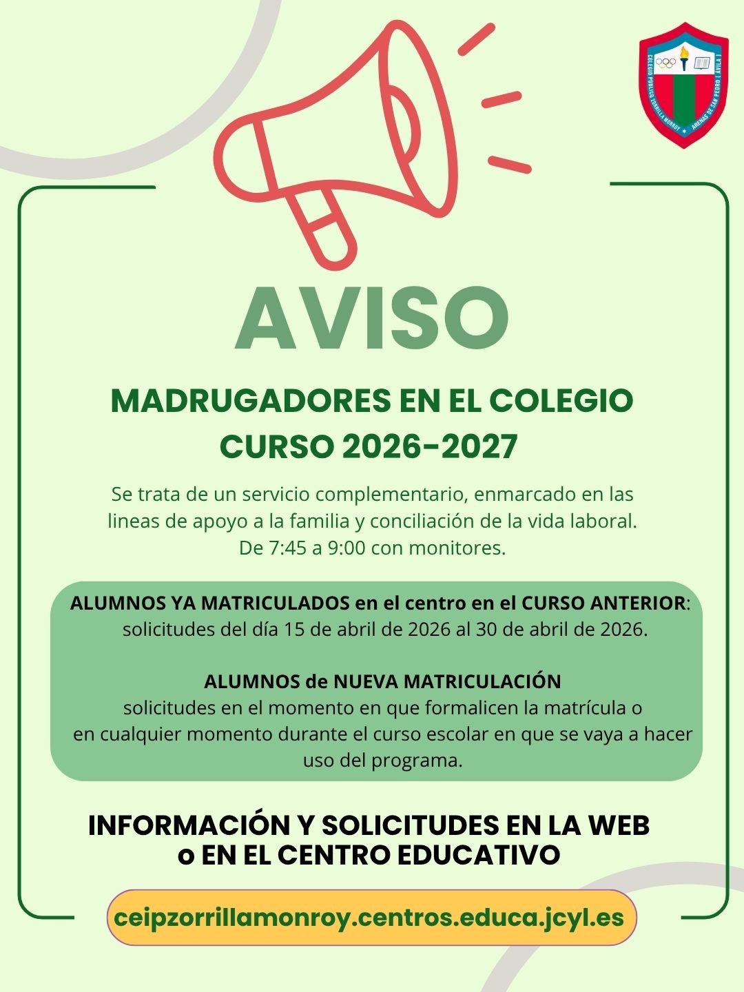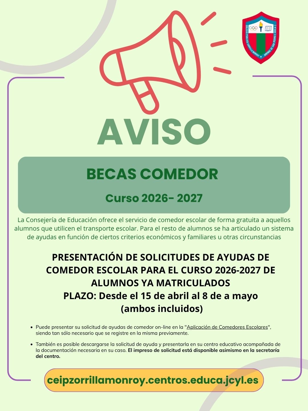 Los usuarios pueden dirigirse al correo electrónico del Centro Educativo para comunicar la inclusión de información que considere ilícita o que atente contra los derechos propios o de terceros.